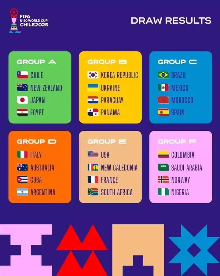 Ce jeudi 29 Mai 2025 à Santiago, la FIFA a procédé au tirage au sort des groupes de de la Coupe du Monde Junior Chili 2025. Les 24 équipes qualifiées sont reparties en six groupes de quatre.