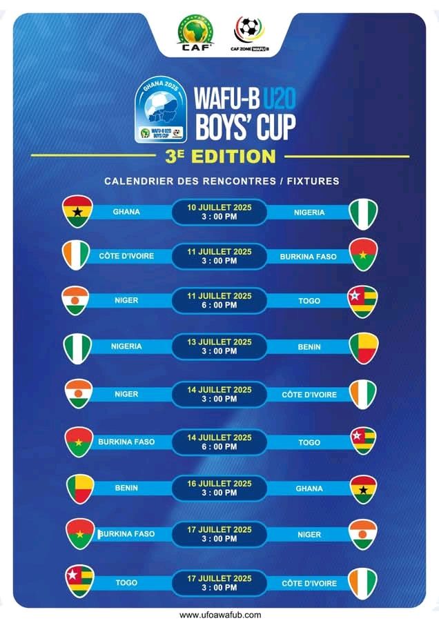 Du 10 au 23 juillet 2025, le Ghana accueillera la 3e édition de la Coupe des nations Ufoa-B U20 des Garçons. Cette compétition sous-régionale rassemblera les huit sélections nationales de la zone ouest B.