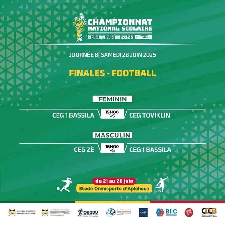 Au football, la finale Dame opposera le CEG 1 Bassila au CEG Toviklin à 15h et à 16h, le CEG Zè sera face au CEG 1 Bassila en homme.